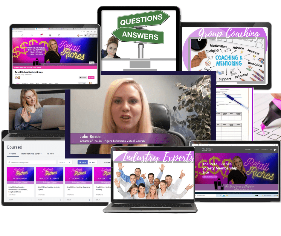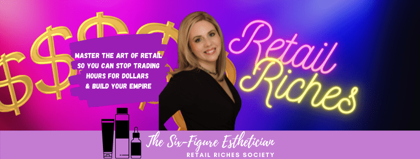 I'm a licensed esthetician, educator and Founder of The Retail Riches Society. I'm so pumped that you’re on this page!